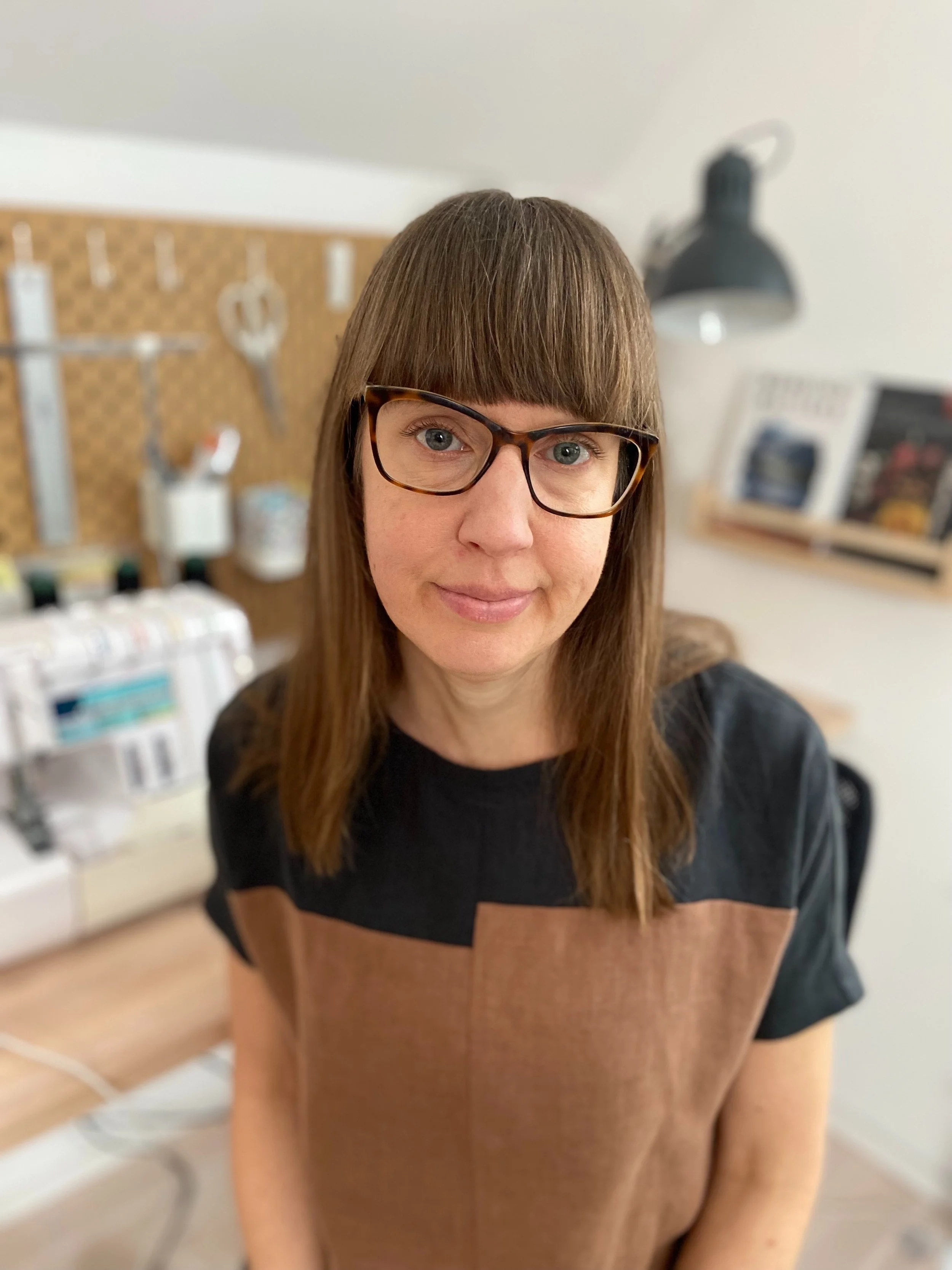 Pines and linen is created by me, Joanna. The name is inspired by the forest and the pines outside the windows of my studio. I love to combine colors and patterns and to create graphical patterns with fabric scraps. I also paint and print my own patterns with help of the cones and needles of the pines. I try to always think zero waste and I take care of small fabric scraps.